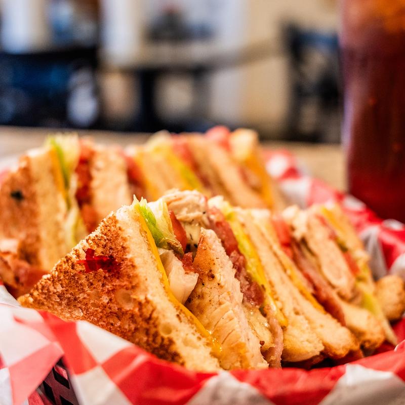 Our triple decker chicken club features oven roasted chicken breast, bacon, American cheese, lettuce, tomato, and Dukes mayo stacked to perfection!