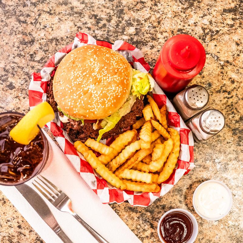 Our fresh ground beef patty cooked to perfection and topped with lettuce, tomato, onion, ketchup, mustard, and Duke's mayo.